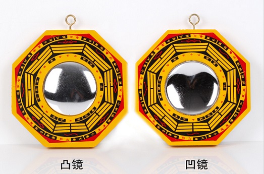 1) 八卦凹镜:八卦凹镜的镜面呈凹陷的圆弧形,主要的作用是“聚集”、“收煞”,收煞即收财,可以收聚家宅的外漏之财,尤其商铺在十字路边的三煞位的,能把街中之财气收为己用。八卦凹镜还可以收聚煞气,可收纳、改变不良形状的气场,如路煞、巷冲、“卷帘水”、“反弓水”等。